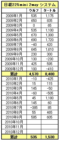 ![]() | 2010年の成績並みは望むべくもなくなってきましたが、ここに来て両配信ともに調子が上がってきました。 9月の成績が酷かったら検証を止めようと考えていましたが、今しばらく続けることにいたします。 ウルフは1枚でのエントリー、 タートルは複数枚数でエントリーする場合があります。 ●月額料金15,000円(ウルフ) ●月額料金20,000円(タートル) |